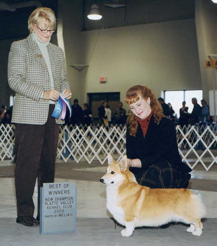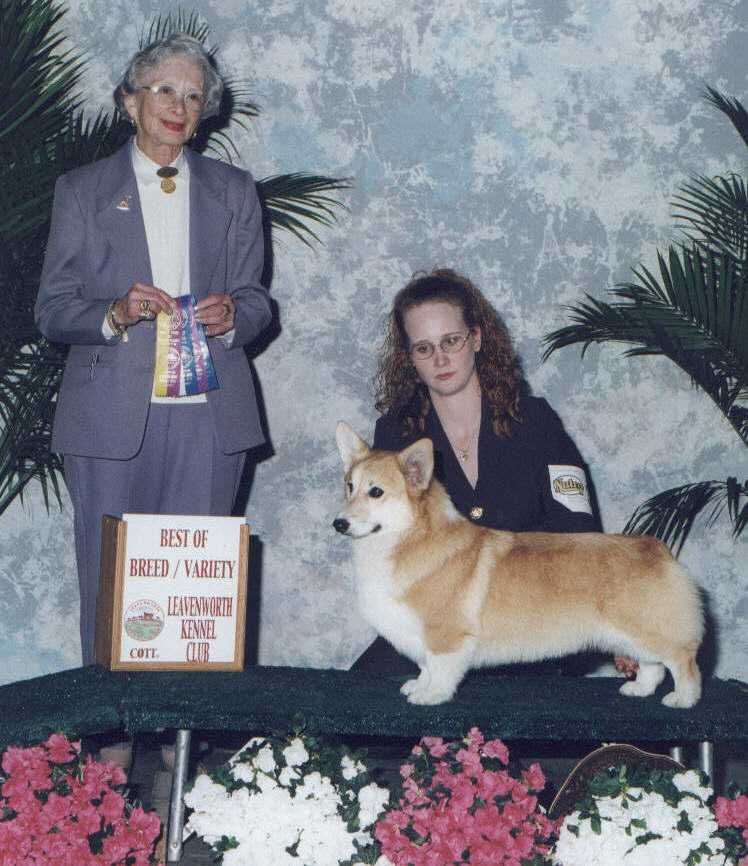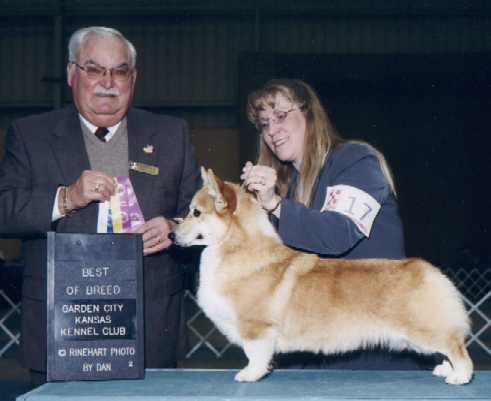 special, in a 30+ entry at St. Joseph MO... BEST OF BREED under breeder-judge Larry Adams. Later that day we receive a huge thrill by receiving a Top Six pull in the Herding Group under Dorothy McNulty |